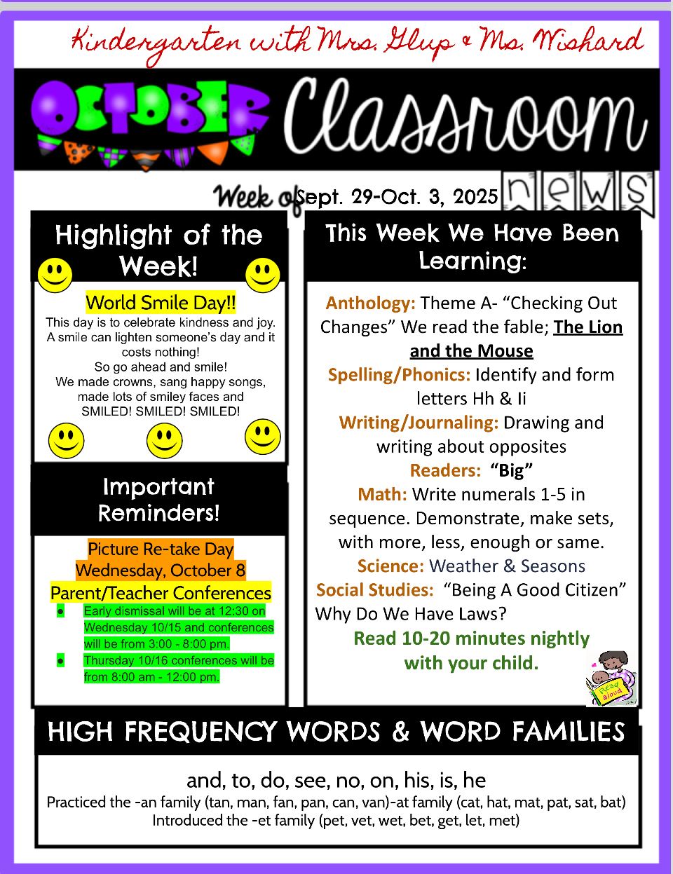 I invite you to read the husky highlights shared by our teachers, and view the testing schedule.